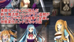 CG・イラスト 未開ダンジョンに挑んだ新人魔法使いとベテラン盗賊がトラップやボスの攻撃で全滅し状態変化エンドしちゃう話|RJ345001|hardening